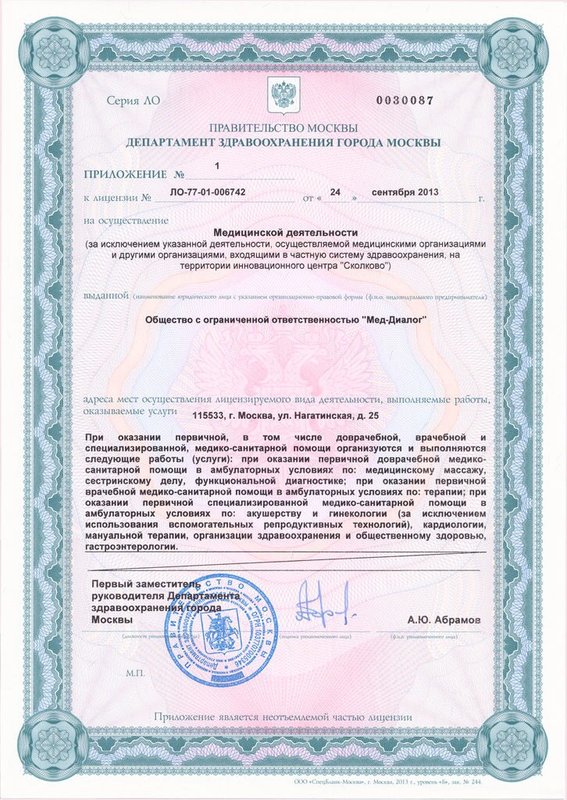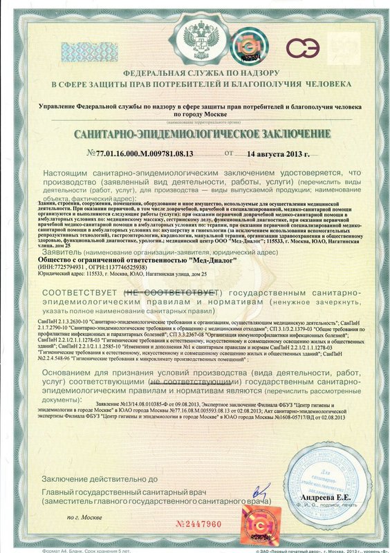 Медицинский центр Мед-Диалог - это учреждение широкого профиля, предлагающее специально подобранный комплекс услуг для каждого клиента. Работа клиники организована с учетом максимального комфорта для посетителей. Оборудование кабинетов позволяет провести диагностические исследования организма пациента для составления программы лечения и профилактических мероприятий. В клинике работают отделения общей терапии, кардиологии, гастроэнтерологии, гепатологии, гематологии, лечения инфекционных заболеваний, неврологии, эндокринологии, андрологии, гинекологии, акушерства, оториноларингологии. Наши врачи имеют соответствующие знания и с пониманием отнесутся к вашим проблемам. Доверяя заботу о своем здоровье нам, вы можете быть уверены в результате.
